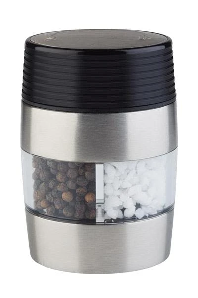 Mit dieser praktischen Salz – und Pfeffermühle sind Speisen optimal nachzuwürzen. Materialbedingt sind Mahlwerke aus Keramik nicht anfällig für feuchtigkeitsbedingten Rost oder Korrosion. Edelstahl und Acryl sind die Grundstoffe der Herstellung. Edelstahl ist korrosionsbeständig, temperaturbeständig, langlebig und zudem hygienisch. Acrylglas ist eine transparente Kunststoffscheibe. Die 2 in1 Salz- und Pfeffermühle ist nicht spülmaschinengeeignet. Es empfiehlt sich ein Abwischen mit einem warmen, feuchten Tuch.