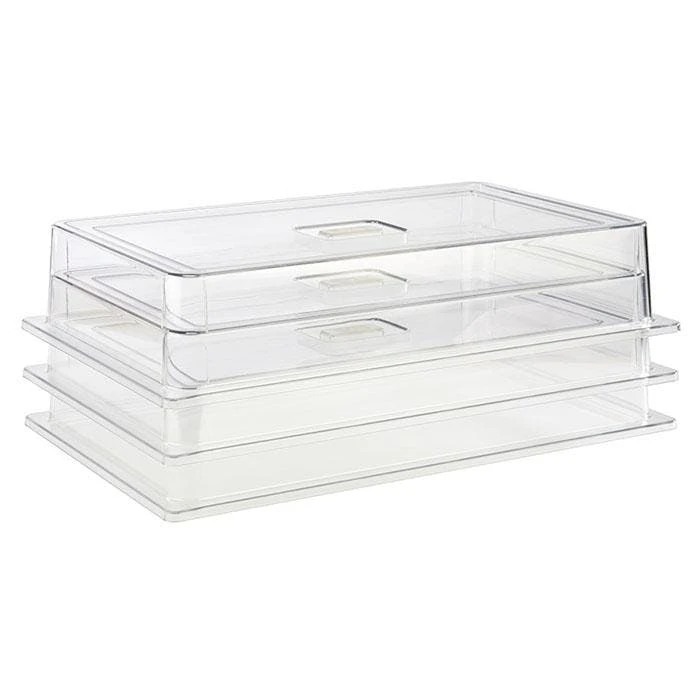 Diese Haube ist perfekt dazu geeignet, um Lebensmittel aller Art vor äußeren Einflüssen zu schützen und Speisen lange frisch zu halten. Die Haube wurde aus hochwertigem Polycarbonat in Deutschland hergestellt und ist lebensmittelunbedenklich. Sie ist spülmaschinengeeignet kann aber auch mit einem feuchten, warmen Tuch gereinigt werden. Um die Speisen leicht entnehmen zu können, befindet sich an der Haube eine Griffmulde, welche es ermöglicht, die Haube ganz leicht aufzunehmen und wieder abzustellen. Die Abdeckhaube hat ein praktisches GN 1/1 Format und ist außerdem stapelbar. Dadurch ist sie perfekt für die Gastronomie geeignet.